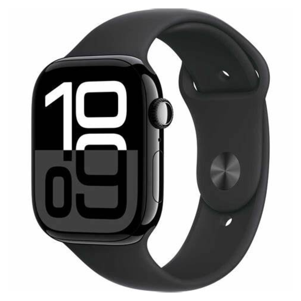 ​The Apple Watch Series 10 GPS 46mm Jet Black Aluminum Case with Black Sport Band S/M combines advanced technology with a sleek, durable design. This model features a 46mm jet black aluminum case paired with a comfortable black sport band in size S/M, suitable for wrists measuring 130–180mm.