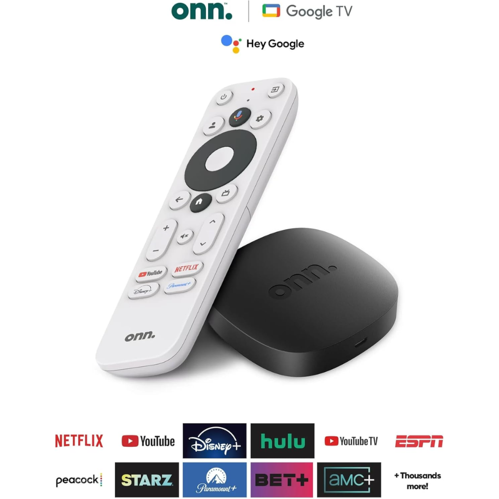 The onn. Google TV 4K Streaming Box (2023) delivers an ultra-high-definition (UHD) viewing experience with crisp 4K resolution and HDR support for vibrant colors and enhanced contrast. Powered by Google TV, this device provides a personalized streaming experience, integrating your favorite apps and recommendations in one intuitive interface. The included Google Assistant voice remote allows for hands-free control, making it easy to search, adjust settings, and even control smart home devices. With built-in Wi-Fi and HDMI connectivity, setup is quick and seamless. Access thousands of apps, including Netflix, YouTube, Disney+, HBO Max, and more, all from one device. Enjoy smooth performance with a quad-core processor and 2GB RAM, ensuring fast navigation and playback.